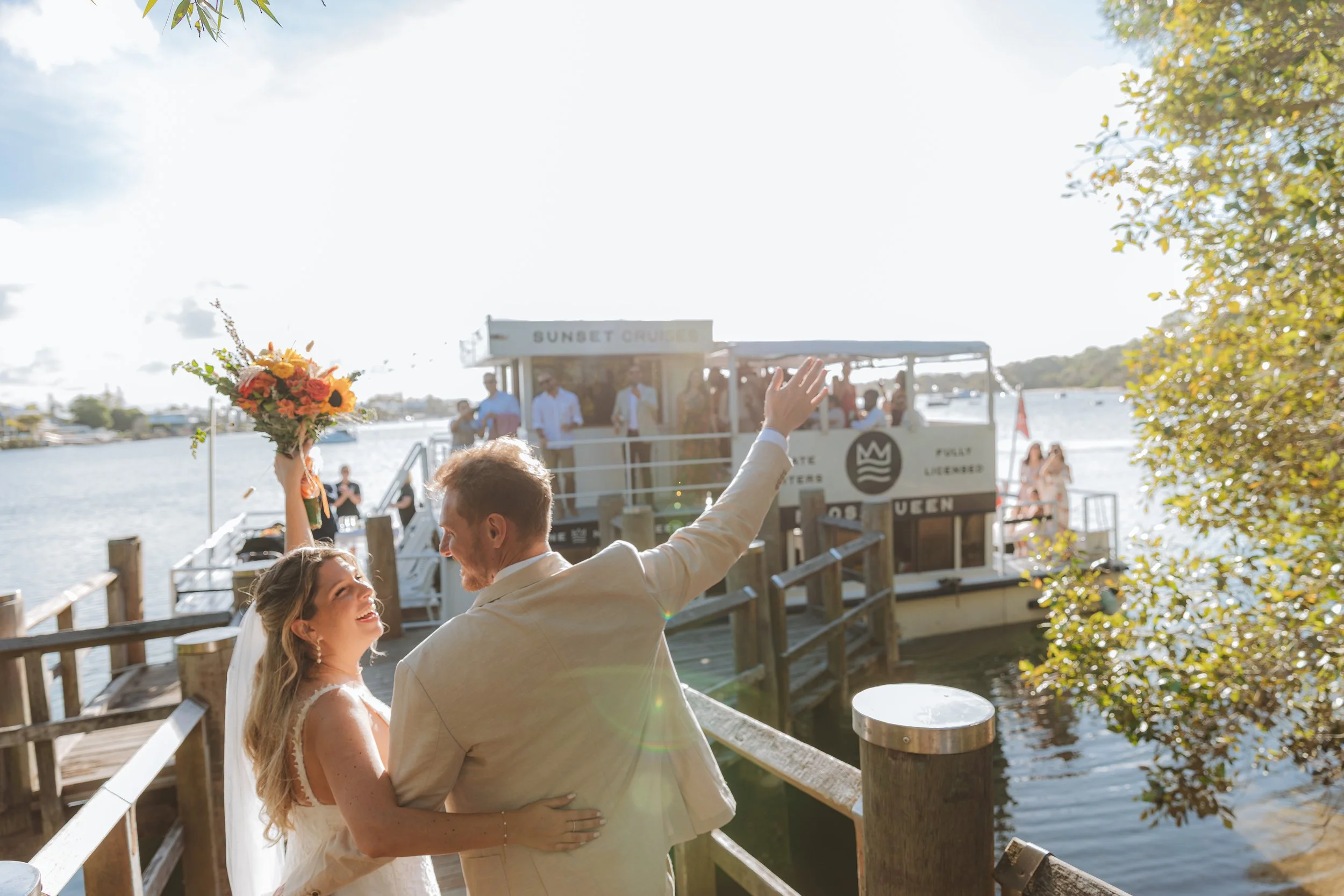 Exchange vows while gently cruising the Noosa River, surrounded by calm water and natural beauty.